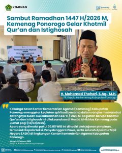 Ponorogo — Plt. Kepala Kantor Kementerian Agama Kabupaten Ponorogo H. Moh. Thohari, S.Ag., M.H. didampingi Kasi Bimas Islam H. Hayat Prihono Wiyadi, M.H. melaksanakan kegiatan rukyatul hilal di Kantor Kementerian Agama Kabupaten Ponorogo yang dipusatkan di Balai Rukyat Ibnu Syatir PP Al Islam Joresan. Kegiatan ini merupakan bagian dari rangkaian penentuan awal bulan Ramadhan 1447 Hijriah.