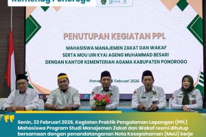 Gara Zawa 23/02/2026 Penutupan PPL Mahasiswa Manajemen Zakat dan Wakaf serta Penandatanganan MoU UIN Kiai Ageng Muhammad Besari dengan Kemenag Ponorogo Ponorogo – Senin, 23 Februari 2026 – Kegiatan Praktik Pengalaman Lapangan (PPL) Mahasiswa Program Studi…