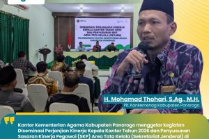 Ponorogo — Jumat, 30 Januari 2026. Pelaksana Tugas (Plt.) Kepala Kantor Kementerian Agama Kabupaten Ponorogo, Mohamad Thohari, S.Ag., M.H., memberikan pengarahan dan pembinaan kepada jajaran pengawas madrasah dalam rangka mewujudkan madrasah yang unggul dan terintegrasi. Kegiatan ini merupakan bagian dari upaya strategis Kementerian Agama dalam mengimplementasikan Asta Protas Menteri Agama Republik Indonesia secara berkelanjutan di…