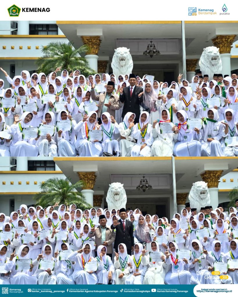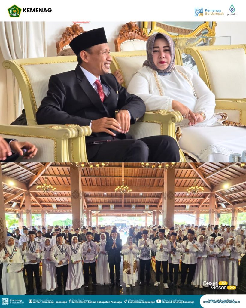 Ponorogo – Sebanyak 3.015 siswa-siswi madrasah mengikuti Wisuda Tahfidz Al-Qur’an sebagai bentuk apresiasi atas perjuangan mereka dalam menghafal Kalamullah. Kegiatan ini dibuka secara resmi oleh Plt. Bupati Lisdyarita bersama Plt. Kepala Kantor Kementerian Agama Kabupaten Ponorogo, Mohamad Thohari.