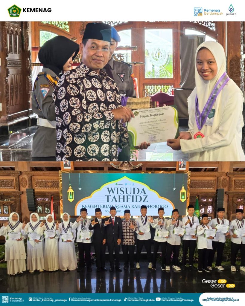 Wisuda Tahfidz ini terselenggara atas sinergi Pemerintah Kabupaten Ponorogo bersama seluruh dinas dan instansi terkait, serta dukungan panitia dari unsur pengawas madrasah, kepala madrasah, dan seluruh elemen pendidikan di lingkungan Kementerian Agama Kabupaten Ponorogo.