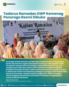 BimasBimas Islam 16/03/2026 Kajian Ramadan Edisi ke-8 Tandai Penutupan Rangkaian Kegiatan Ramadan 1447 H di Kemenag Ponorogo Ponorogo – Senin, 16 Maret 2026, Kementerian Agama Kabupaten Ponorogo menggelar Kajian Ramadan Edisi ke-8…
