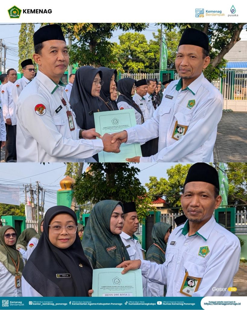 Penyerahan SK Kenaikan Pangkat kepada 19 ASN dilakukan secara langsung oleh Pelaksana Tugas (Plt) Kepala Kantor Kemenag Ponorogo, Mohamad Thohari. Momentum ini menjadi bentuk apresiasi atas dedikasi dan kinerja para ASN yang telah memenuhi syarat kenaikan pangkat.
