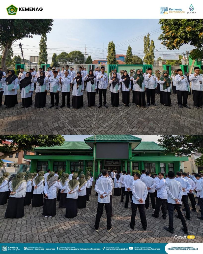 Kegiatan apel pagi ini ditutup dengan doa bersama, sebagai bentuk harapan agar seluruh ASN Kementerian Agama Kabupaten Ponorogo senantiasa diberikan kelancaran dalam menjalankan tugas serta terus berkomitmen memberikan pelayanan terbaik kepada masyarakat.