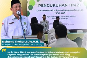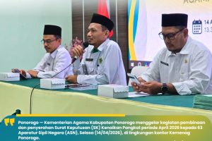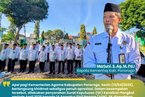 Ponorogo — Suasana khidmat menyelimuti halaman Kantor Kementerian Agama Kabupaten Ponorogo dalam pelaksanaan upacara kesadaran nasional tanggal 17. Momentum ini terasa istimewa bagi puluhan Aparatur Sipil Negara (ASN) yang menerima tanda kehormatan Satyalancana Karya Satya atas pengabdian tanpa cacat selama 10, 20, hingga 30 tahun masa bakti. Penyematan penghargaan dilakukan langsung oleh Pelaksana Tugas (Plt.)…