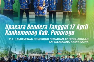 Suasana Khidmat Warnai Upacara Bendera 17 April 2026, 42 ASN Kemenag Ponorogo Terima Satyalancana Karya Satya