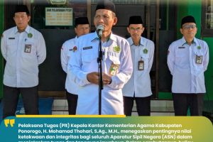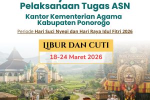 Pelaksana Tugas (Plt) Kepala Kantor Kementerian Agama Kabupaten Ponorogo, Mohamad Thohari, S.Ag., M.H., secara resmi membuka kegiatan Review Rencana Penarikan Dana Triwulan I pada Madrasah Ibtidaiyah Negeri (MIN), Kamis (2/4/2026). Kegiatan tersebut digelar di Aula Kantor Kemenag Kabupaten Ponorogo dan diikuti oleh bendahara serta operator keuangan MIN, pengelola keuangan, dan perencana di lingkungan Kemenag Ponorogo….