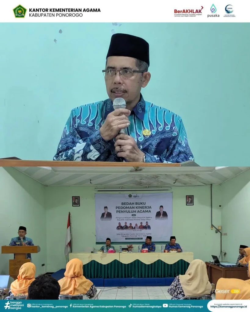 Kepala Kantor Kementerian Agama Kabupaten Ponorogo, Dr. Moh. Nurul Huda, M.Pd., memberikan sambutan dalam kegiatan IPARI dengan pesan inspiratif bagi seluruh penyuluh agama.