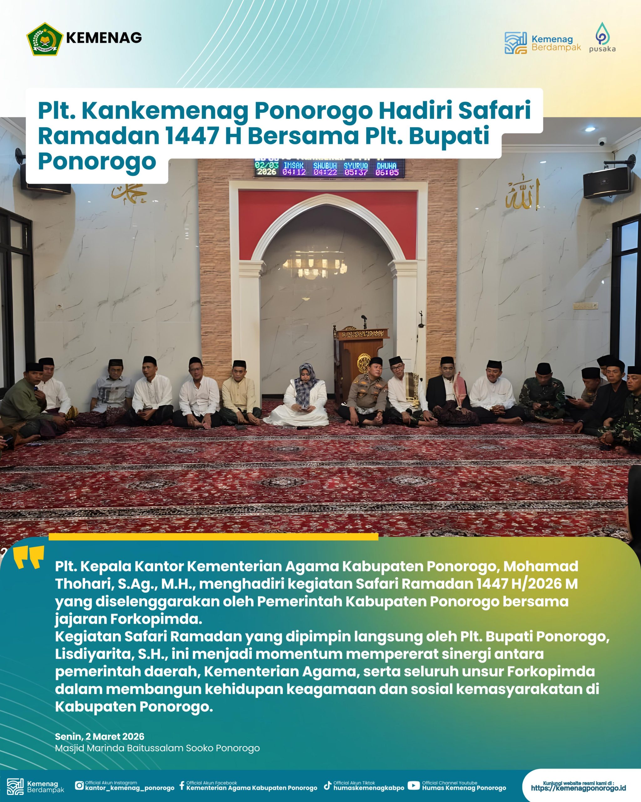 Kementerian Agama Kabupaten Ponorogo melalui Pengawas Jaminan Produk Halal menghadirkan Buku Saku: Panduan Sertifikasi Halal RPH/RPU sebagai acuan praktis bagi pelaku usaha dan penyuluh halal.