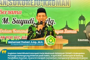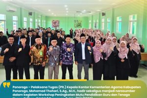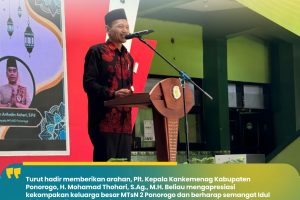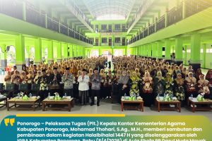 Ponorogo — Pelaksana Tugas (Plt.) Kepala Kantor Kementerian Agama Kabupaten Ponorogo, Mohamad Thohari, S.Ag., M.H., memberikan sambutan sekaligus penguatan dalam kegiatan pertemuan wali murid di MTsN 1 Ponorogo. Dalam arahannya, beliau menekankan pentingnya pembentukan karakter dan etika peserta didik sebagai bagian utama dari proses pendidikan di madrasah. Menurutnya, pendidikan tidak hanya berfokus pada capaian akademik,…