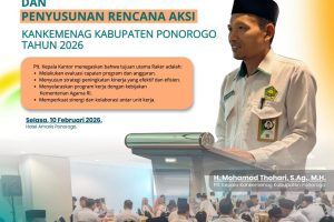 PONOROGO – Dalam rangka memperingati Hari Peduli Sampah Nasional (HPSN) Tahun 2026, Kementerian Agama Kabupaten Ponorogo menginstruksikan seluruh pegawainya untuk melaksanakan aksi kerja bakti massal di lingkungan kantor dan satuan kerja masing-masing. Langkah ini merupakan tindak lanjut dari surat Sekretaris Daerah Ponorogo terkait imbauan menjaga kebersihan lingkungan dalam menyambut HPSN yang diperingati setiap tanggal 21…