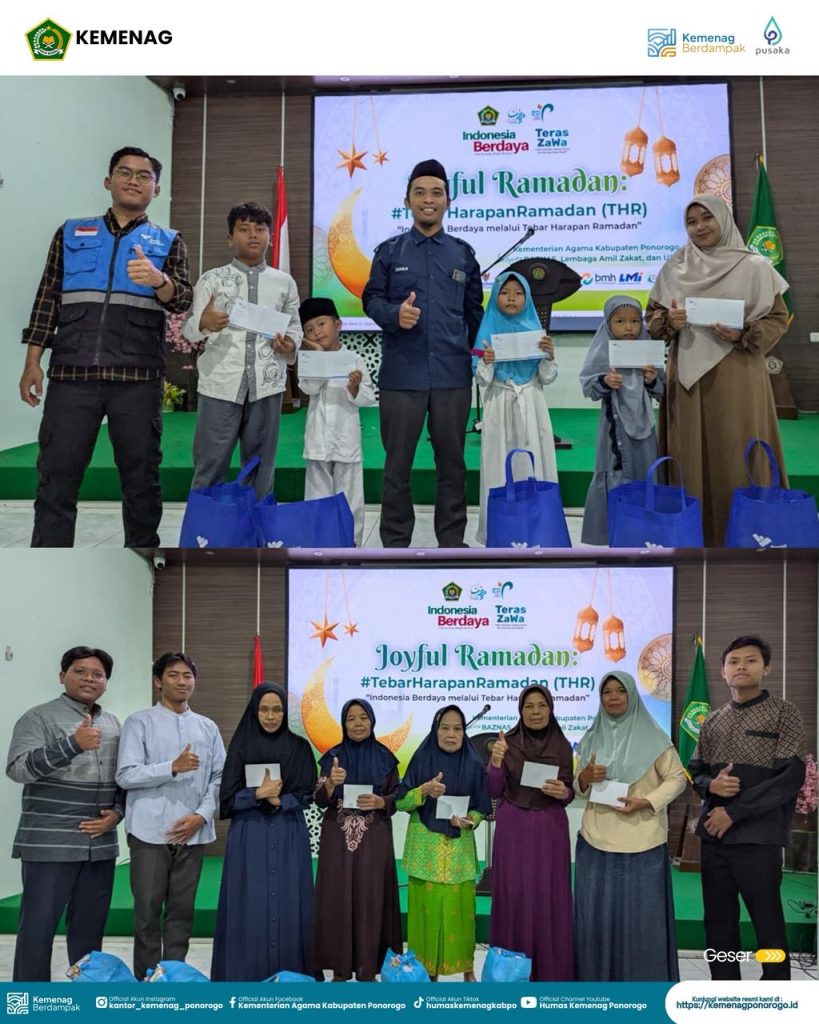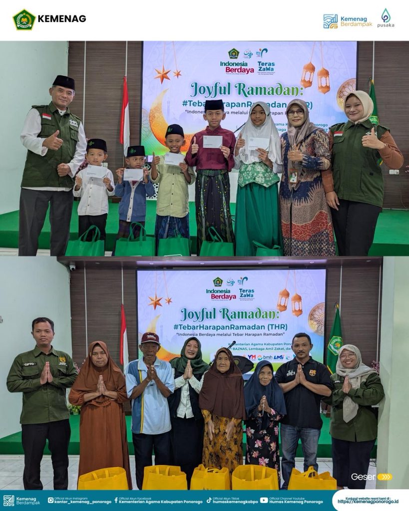 Ponorogo – Rabu, 11 Maret 2026, Kementerian Agama Kabupaten Ponorogo menggelar kegiatan bertema “Joyful Ramadan: Tebar Harapan Ramadan (THR) – Indonesia Berdaya melalui Tebar Harapan Ramadan”. Kegiatan ini dilaksanakan bekerja sama dengan BAZNAS serta berbagai Lembaga Amil Zakat (LAZ) yang ada di Ponorogo.