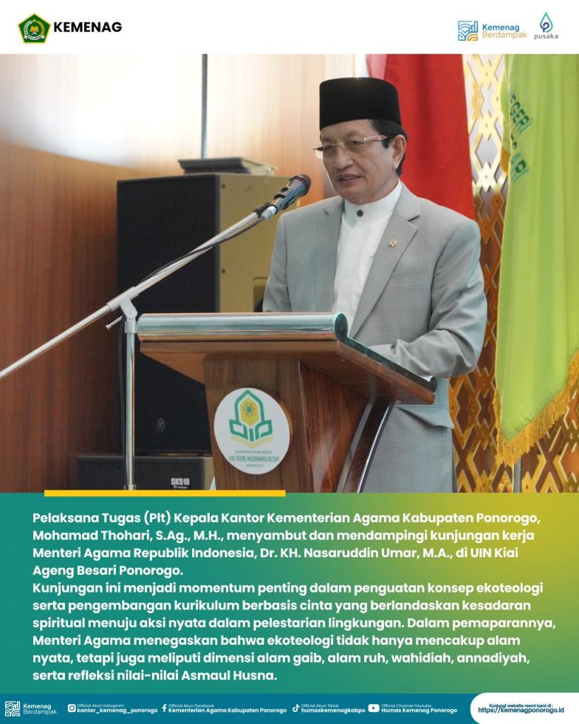 #KemenagRI #MenagRI #NasaruddinUmar #Ekoteologi #KurikulumCinta #UINKiaiAgengBesari #Ponorogo #Gontor #PendidikanIslam #KesadaranSpiritual #AksiLingkungan #AsmaulHusna #IslamRahmatanLilAlamin