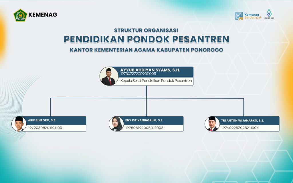 Seksi Pendidikan Diniyah dan Pondok Pesantren bertugas melakukan pelayanan, bimbingan