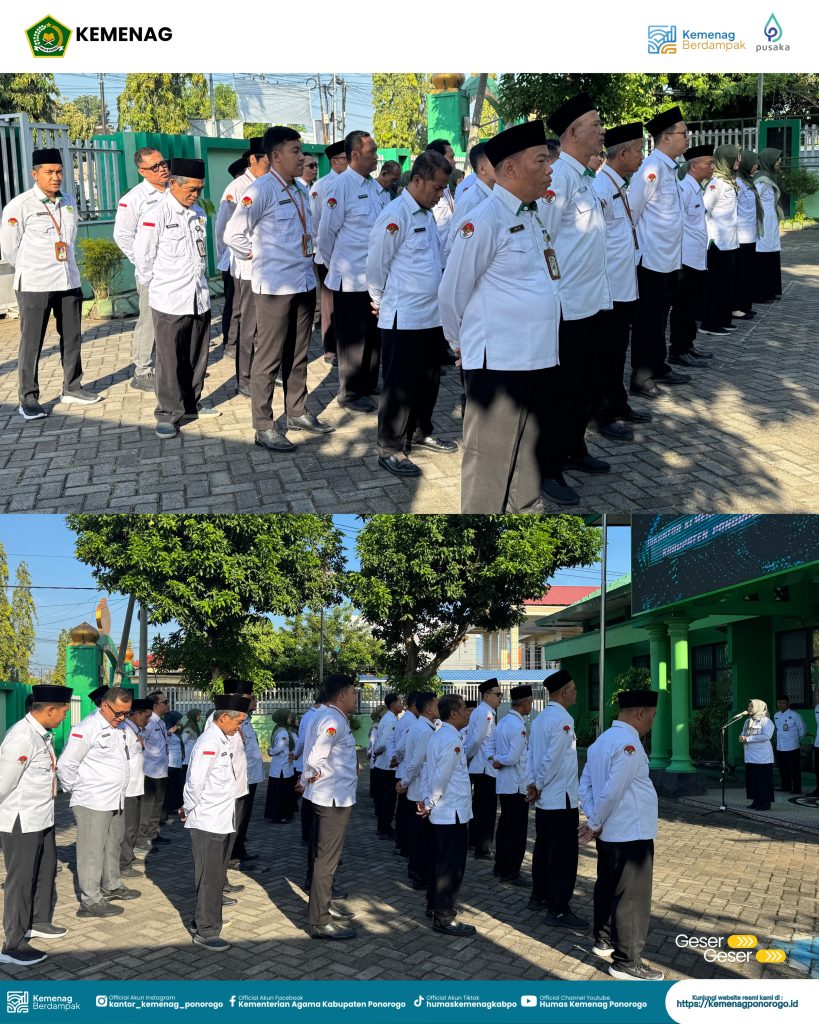 PONOROGO – Aparatur Sipil Negara (ASN) di lingkungan Kantor Kementerian Agama mengawali pekan dengan pelaksanaan apel pagi rutin pada Senin (20/04/2026). Bertindak selaku pembina apel, Penyelenggara Zakat dan Wakaf, Ifrotul Hidayah, S.Ag., M.A., menyampaikan sejumlah pesan strategis terkait adaptasi teknologi dan pengamanan aset keagamaan.