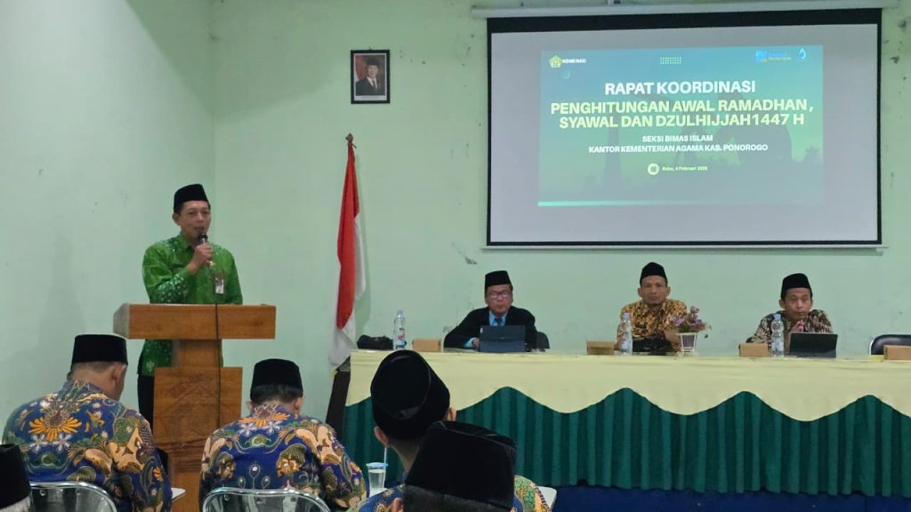 Ponorogo (Kemenag) — Seksi Bimbingan Masyarakat (Bimas) Islam Kantor Kementerian Agama Kabupaten Ponorogo menggelar Rapat Koordinasi Penghitungan Awal Ramadan, Syawal, dan Dzulhijjah 1447 Hijriah pada Rabu (4/2/2026). Kegiatan ini dilaksanakan sebagai upaya penguatan koordinasi dan pemahaman bersama dalam penentuan awal bulan hijriah, khususnya pada momentum penting keagamaan.